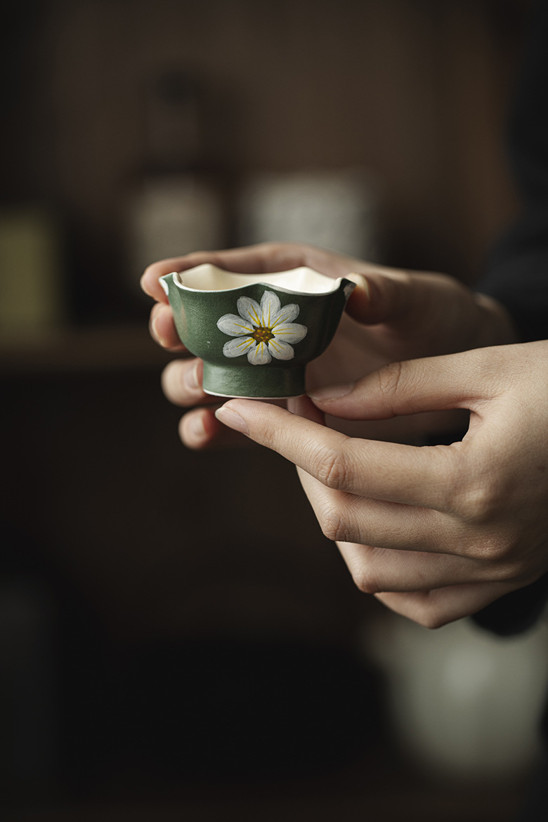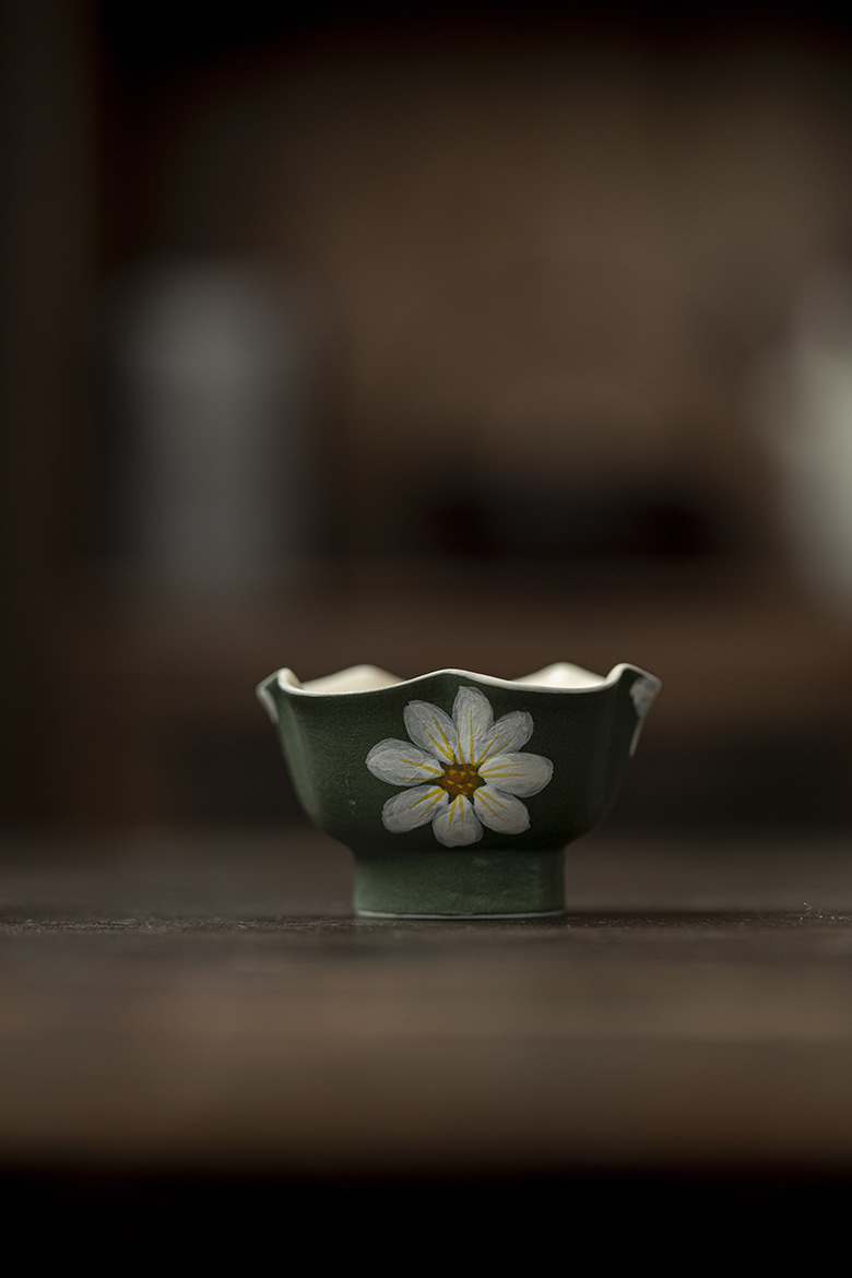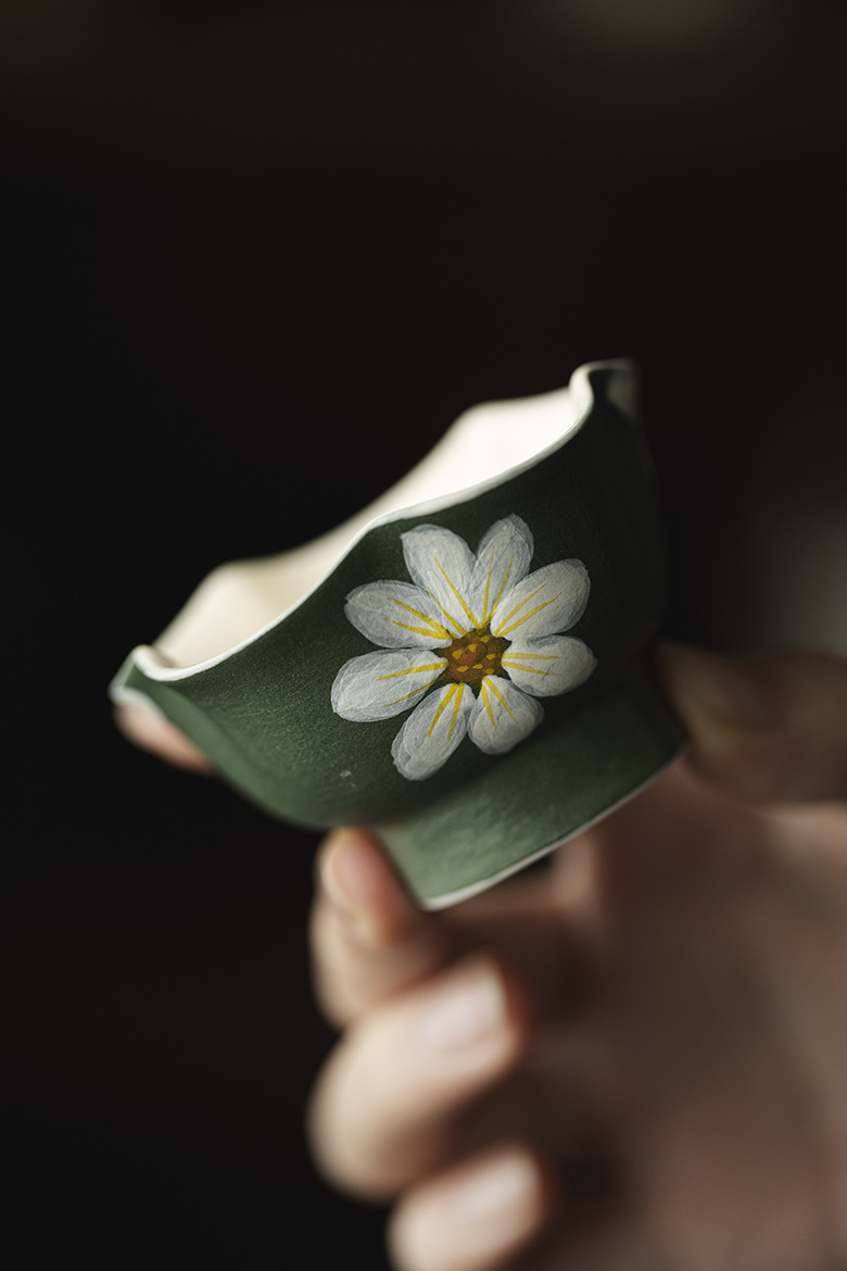 Silent Wind Vintage Dark Green Powder Citation Hand-Painted Daisy 35ml teacup