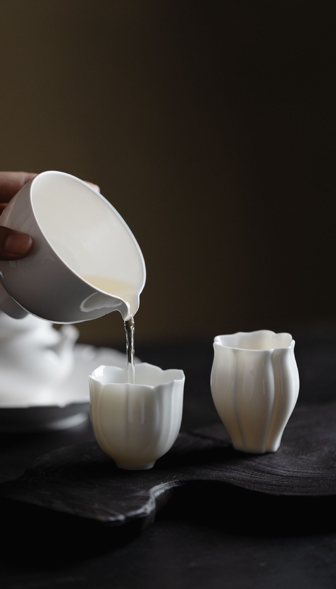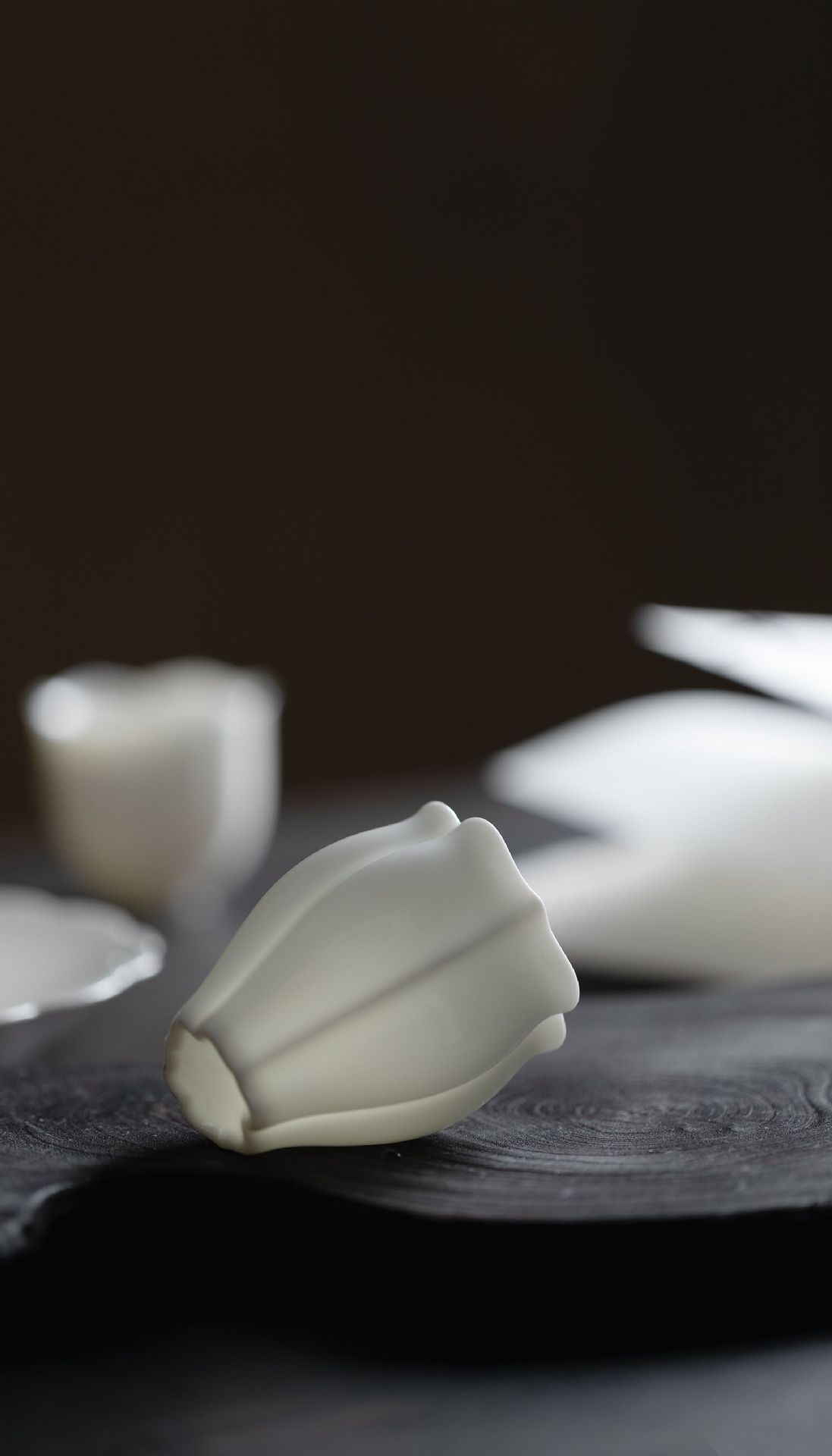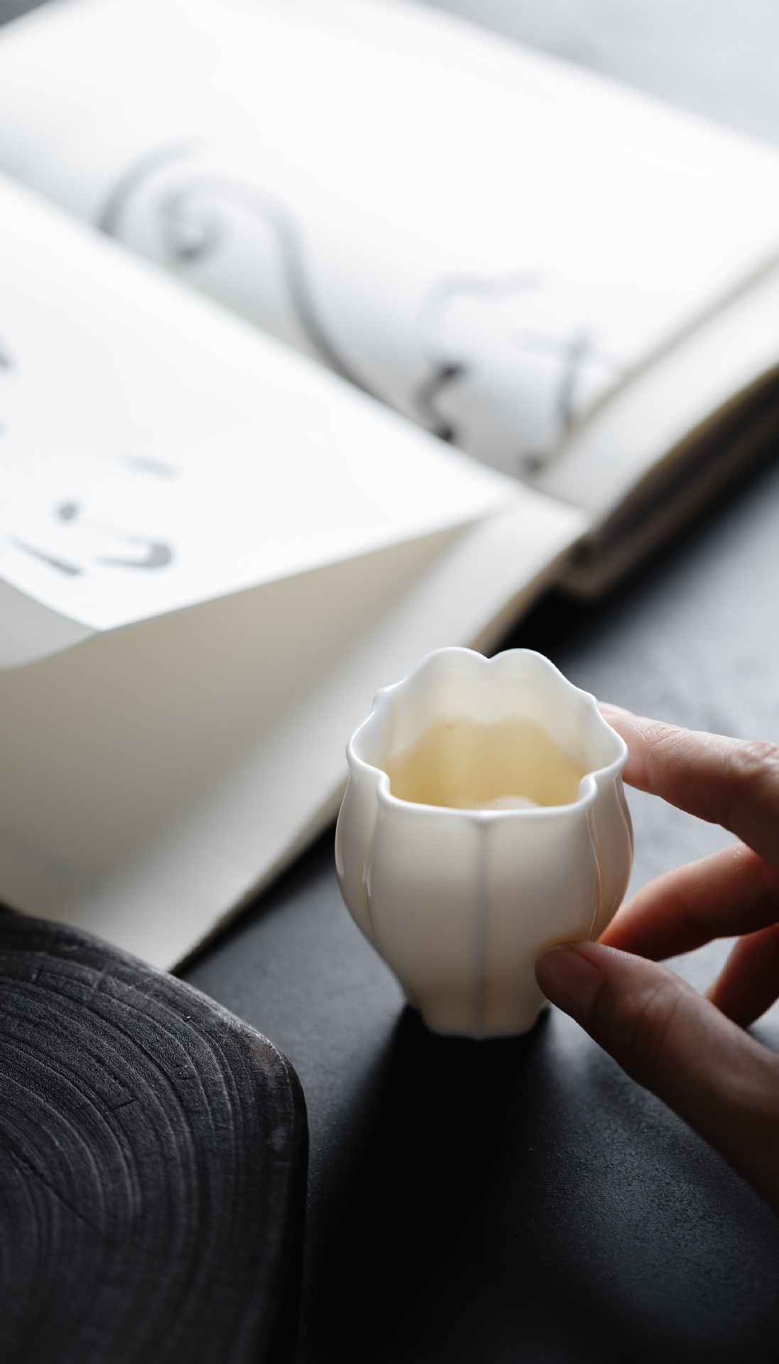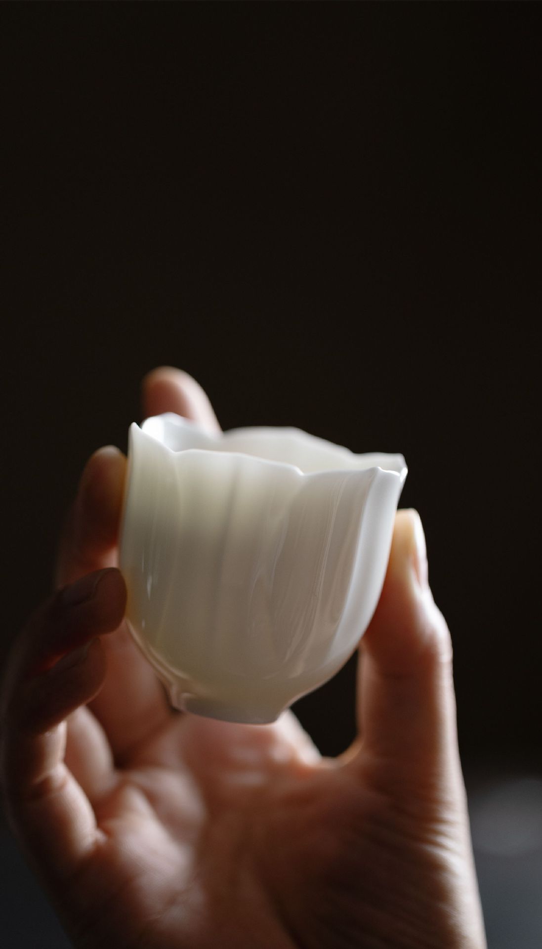 Ewe's Fat Jade Clay Tulip and Rose-Shaped White Porcelain Master Tea Cup