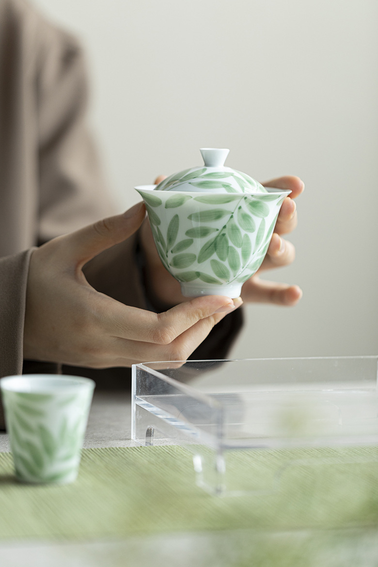 Artistic Hand-painting: Each Gaiwan is adorned with a hand-painted willow leaf pattern, showcasing the skill and artistry of the craftsmen. The willow leaf design is not only aesthetically pleasing but also symbolizes grace and tranquility.