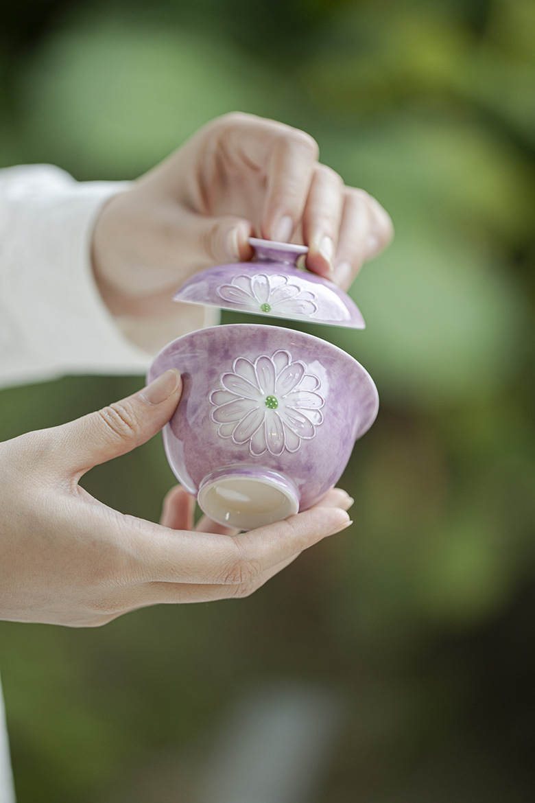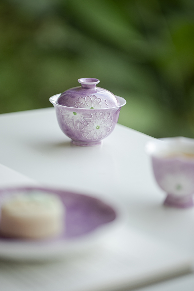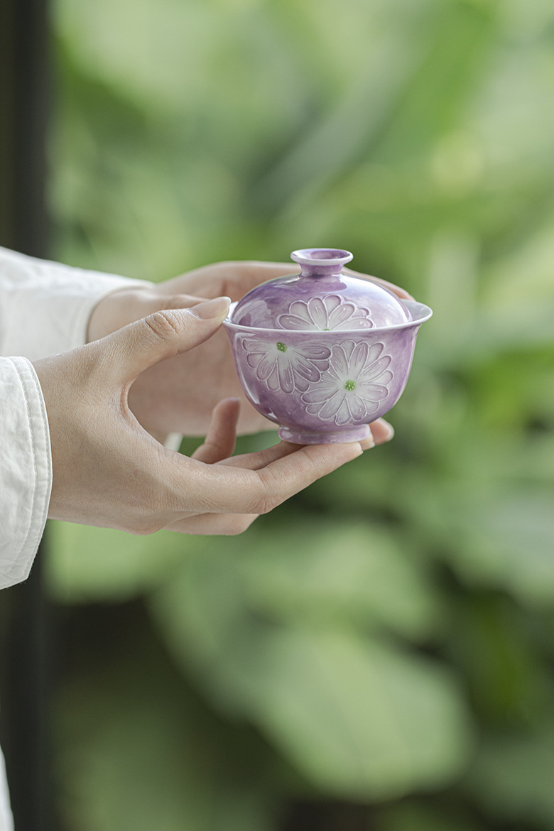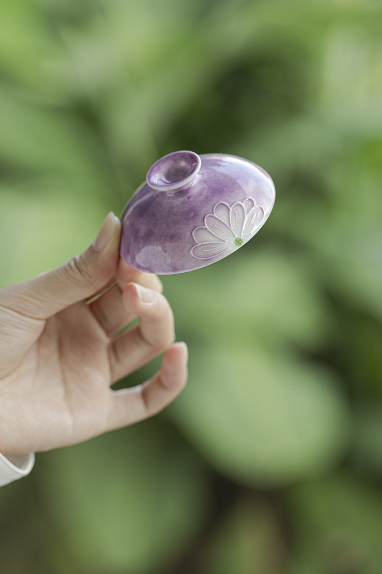 Cardamom Purple Ceramic Arita-yaki Hand-painted Daisy 115ml Gaiwan