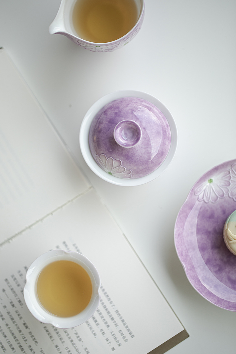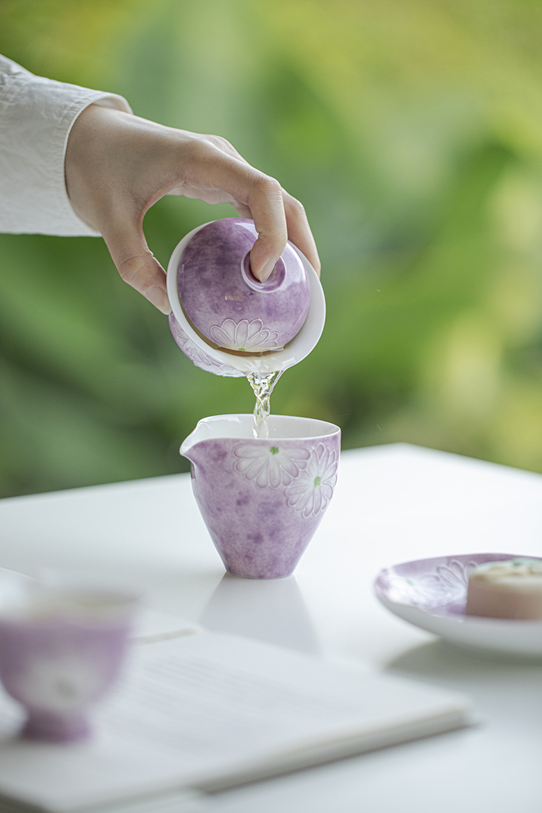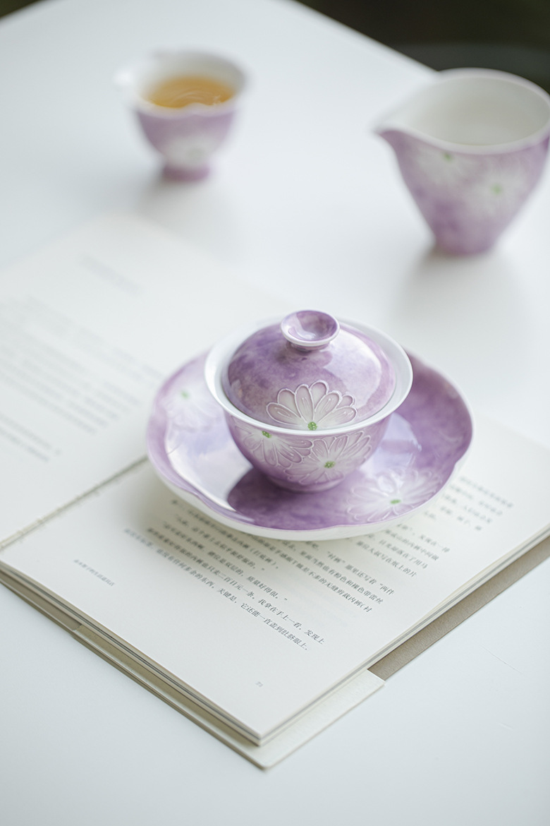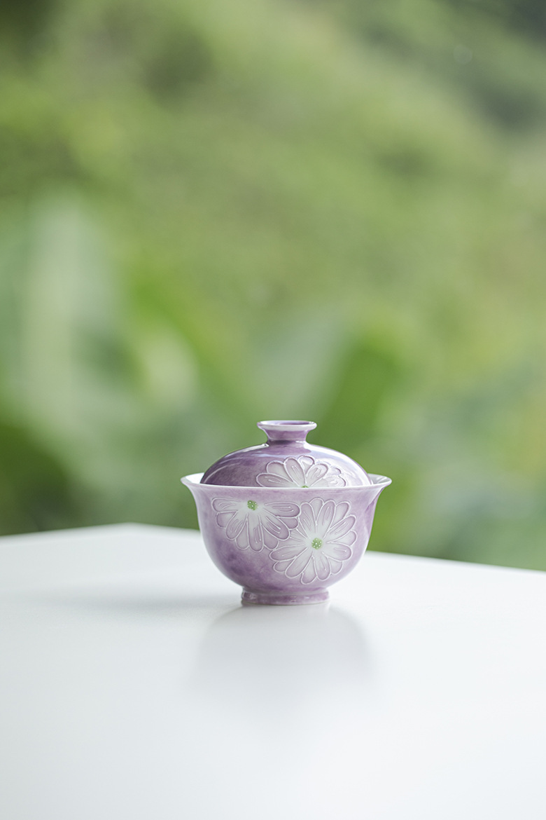 Cardamom Purple Ceramic Arita-yaki Hand-painted Daisy 115ml Gaiwan