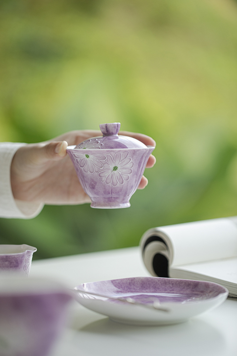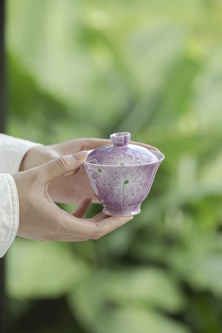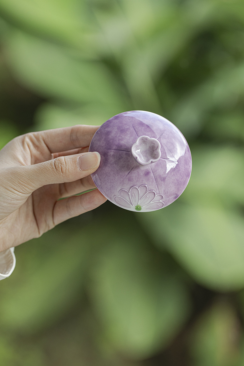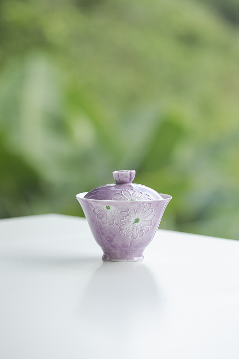 Cardamom Purple Ceramic Arita-yaki Hand-painted Daisy 115ml Gaiwan