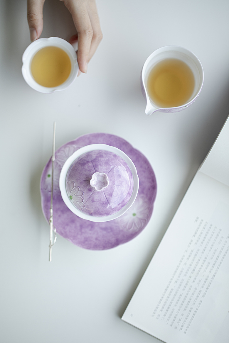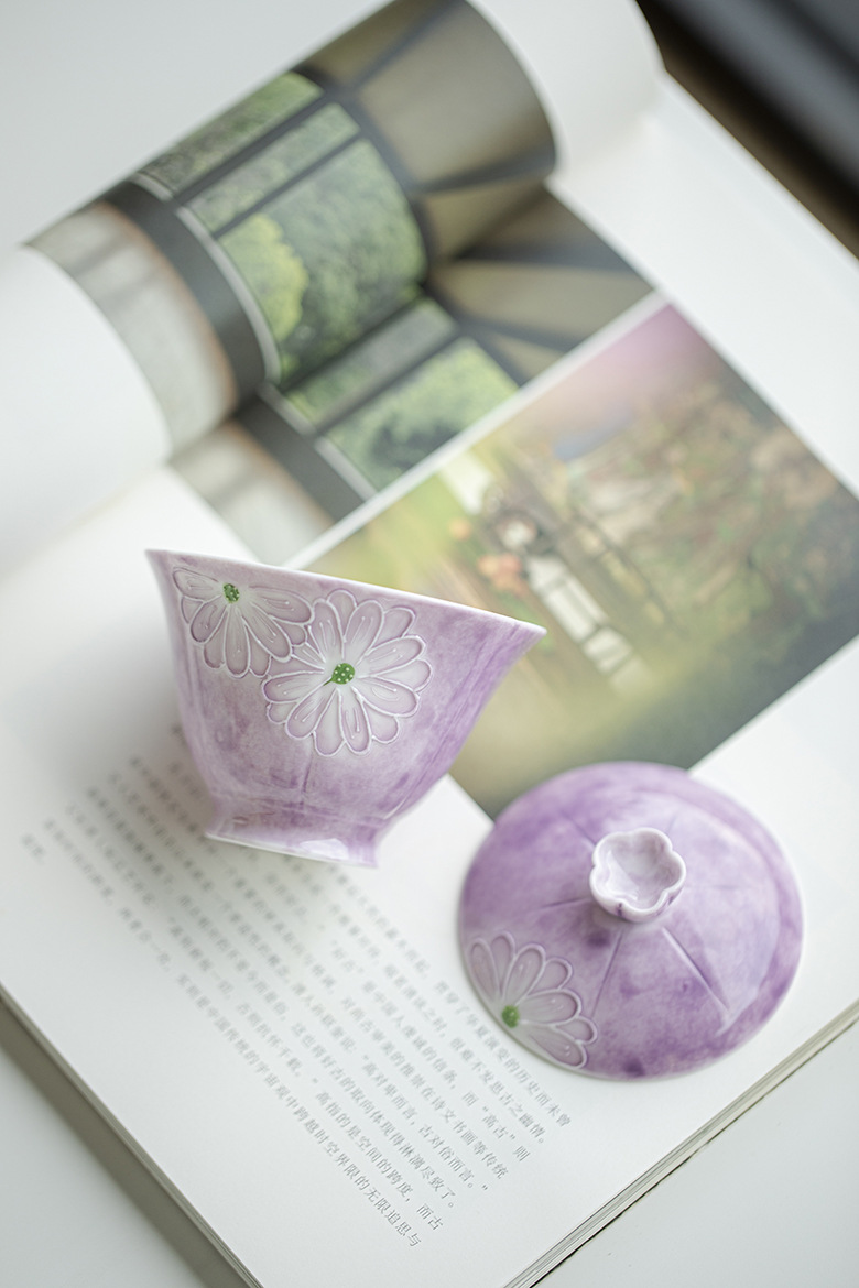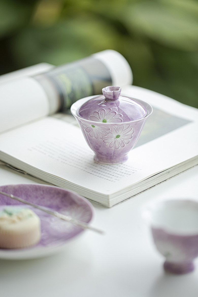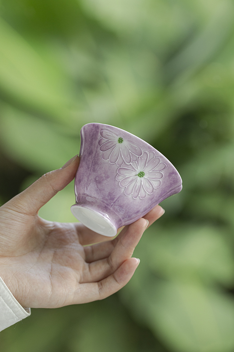 Cardamom Purple Ceramic Arita-yaki Hand-painted Daisy 115ml Gaiwan