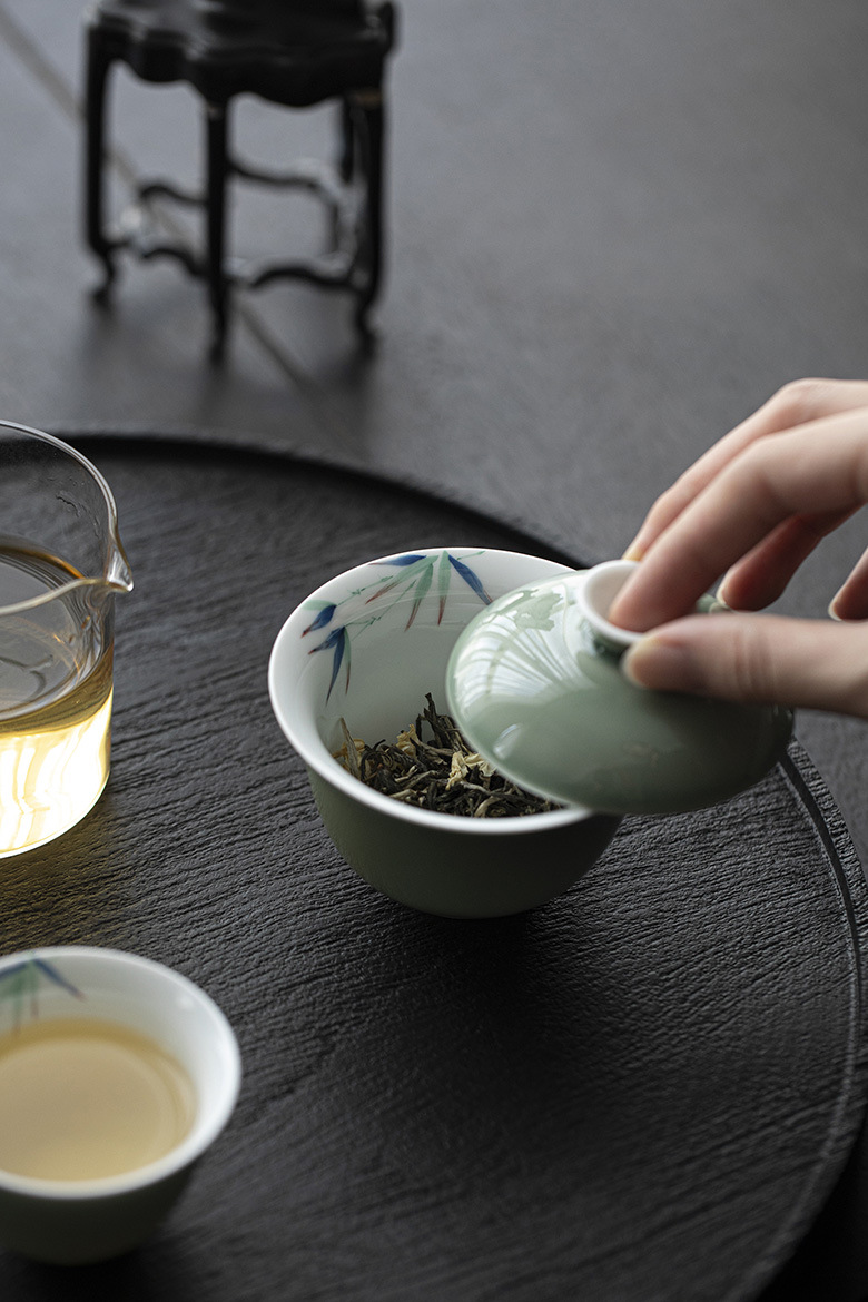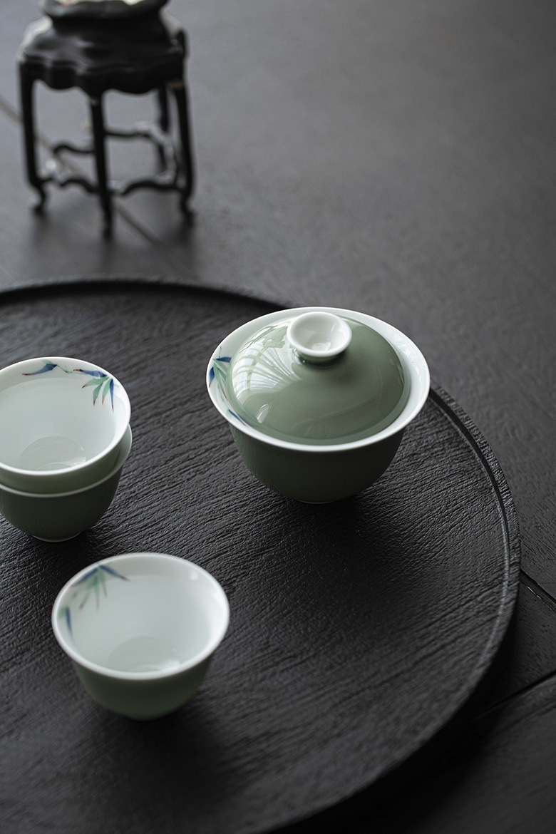 Colored Glaze Ceramic Celadon Bamboo 135ml Gaiwan