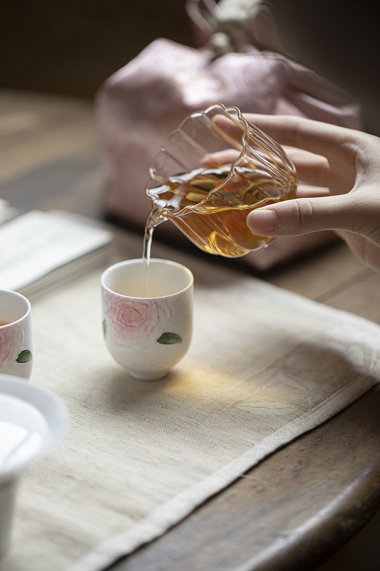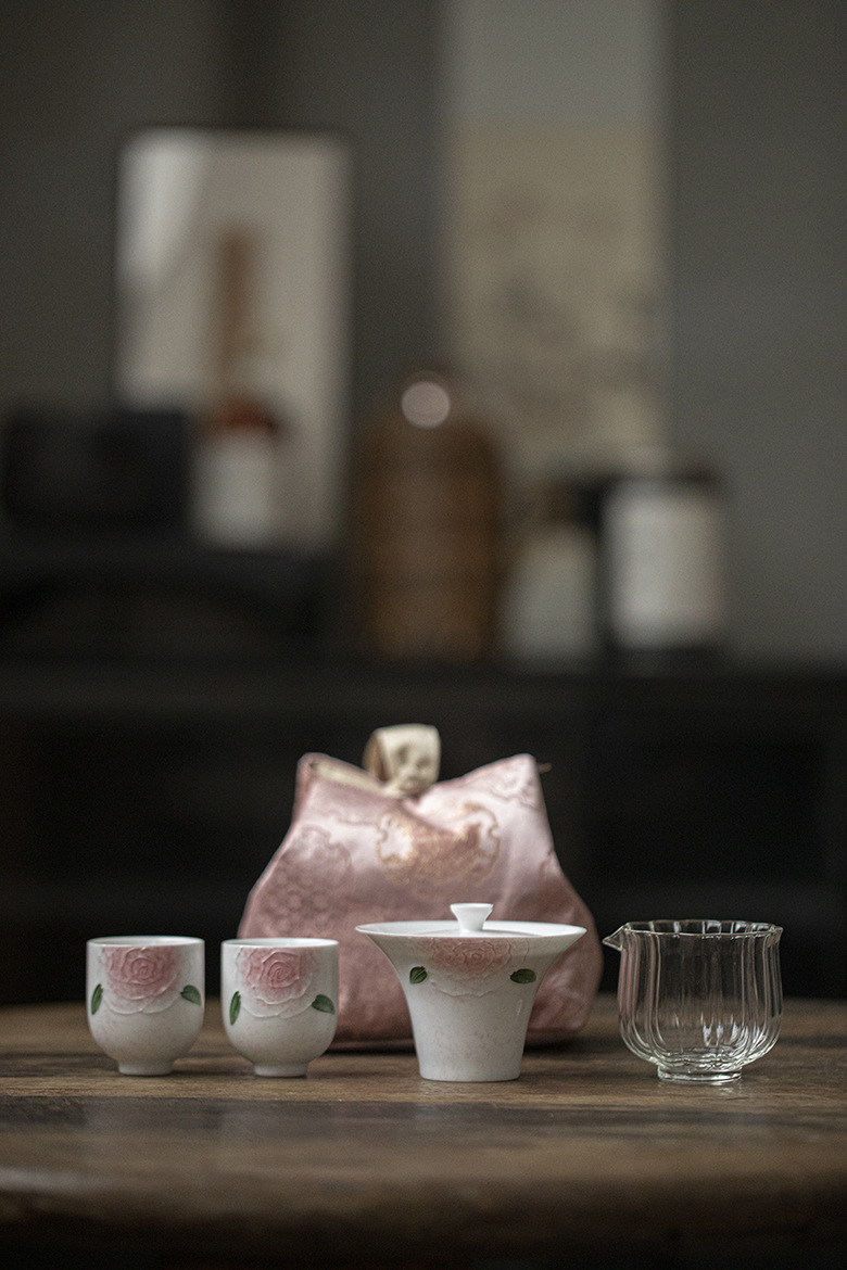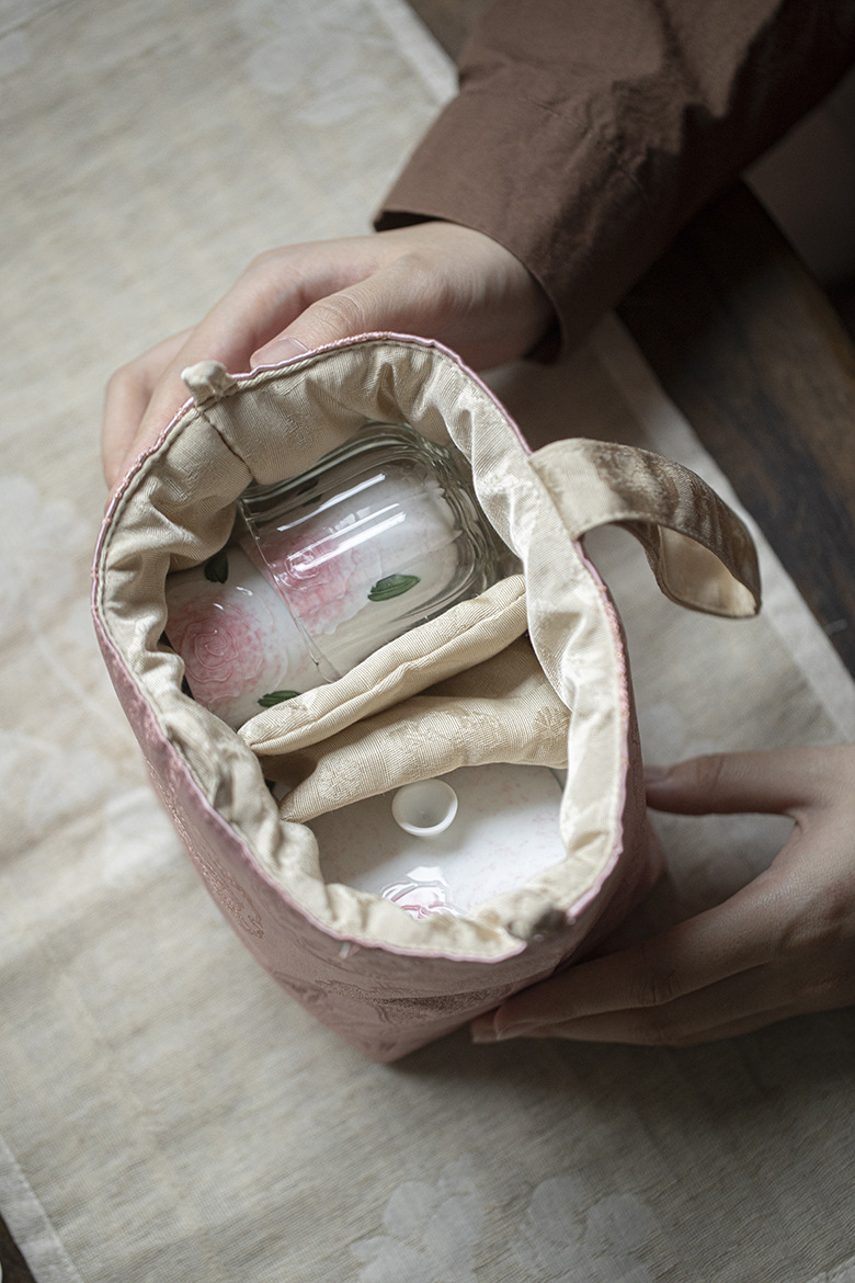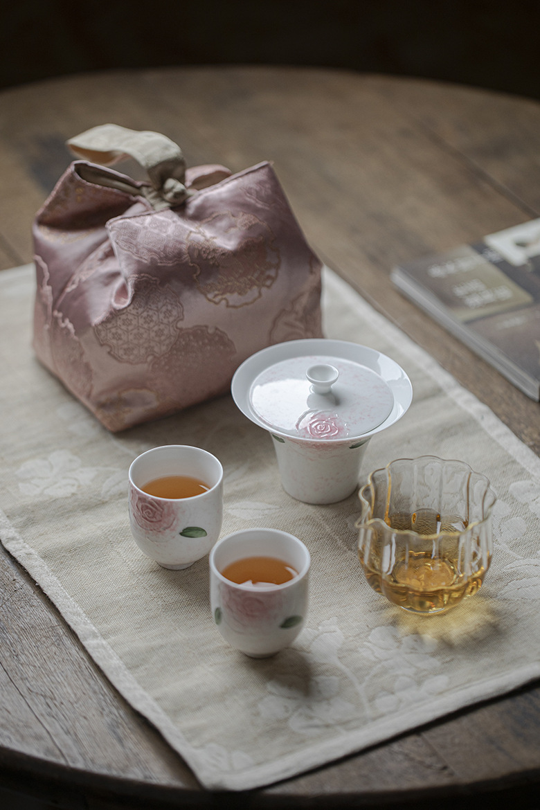 Our new elegant rose hand painting tea set is here to help. The set includes 1 stunning Gaiwan, beautiful tea cups for 2, a handy tea cloth, a elegant glass fair cup and a exquisite bag to easily pack all these tea wares.