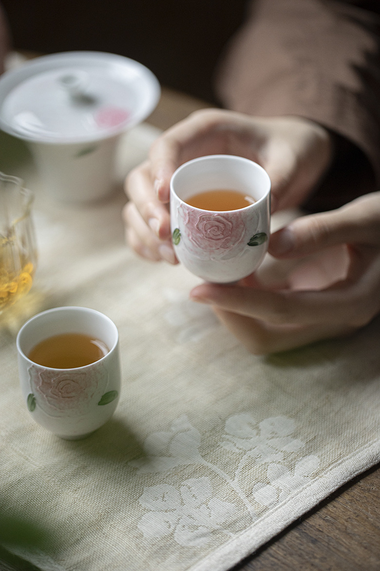 Hand-painted Ceramic Rose Kung Fu Tea Set