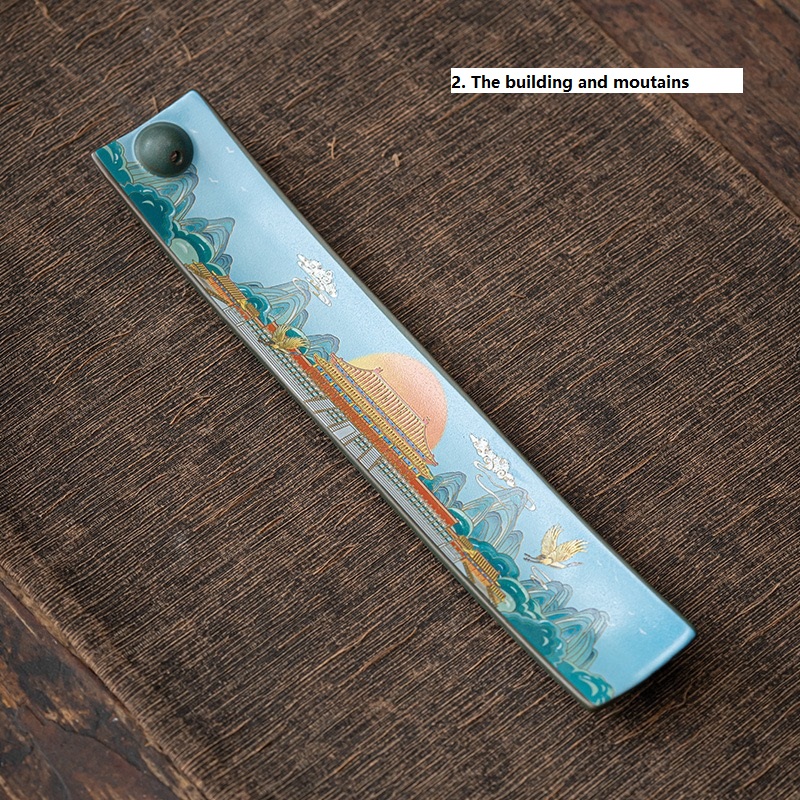 The incense stick is made of ceramic material and painted with classic Chinese paintings or patterns to help the smoke curl up and overflow with fragrance. It can be used as a desk decoration and has an elegant atmosphere.