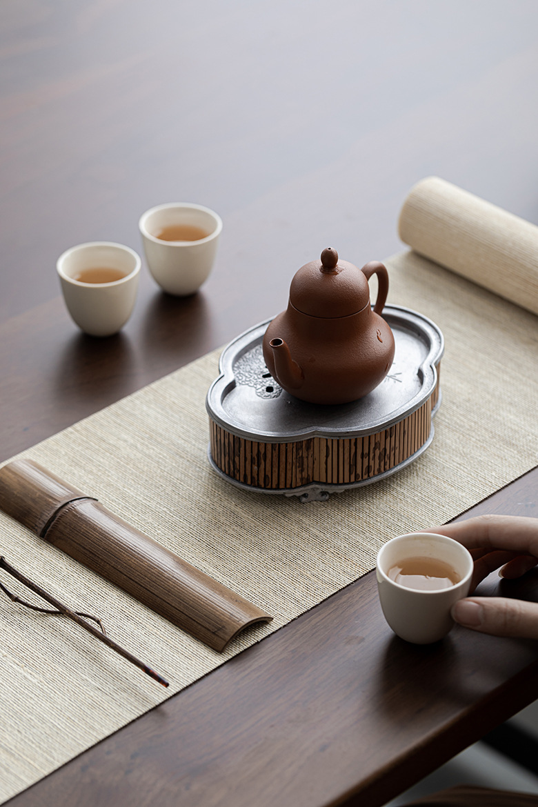 Handcrafted Pure Tin Xiangfei Bamboo Dry Brew Tea Tray