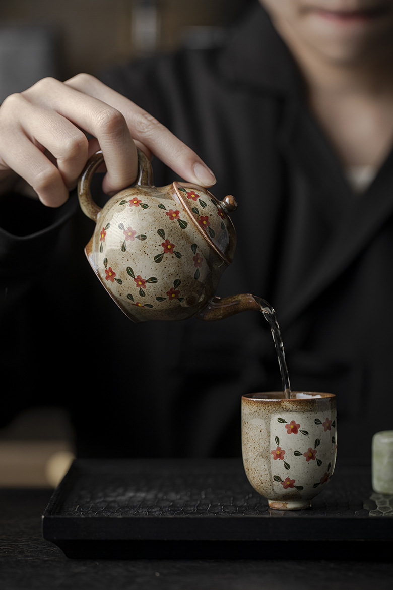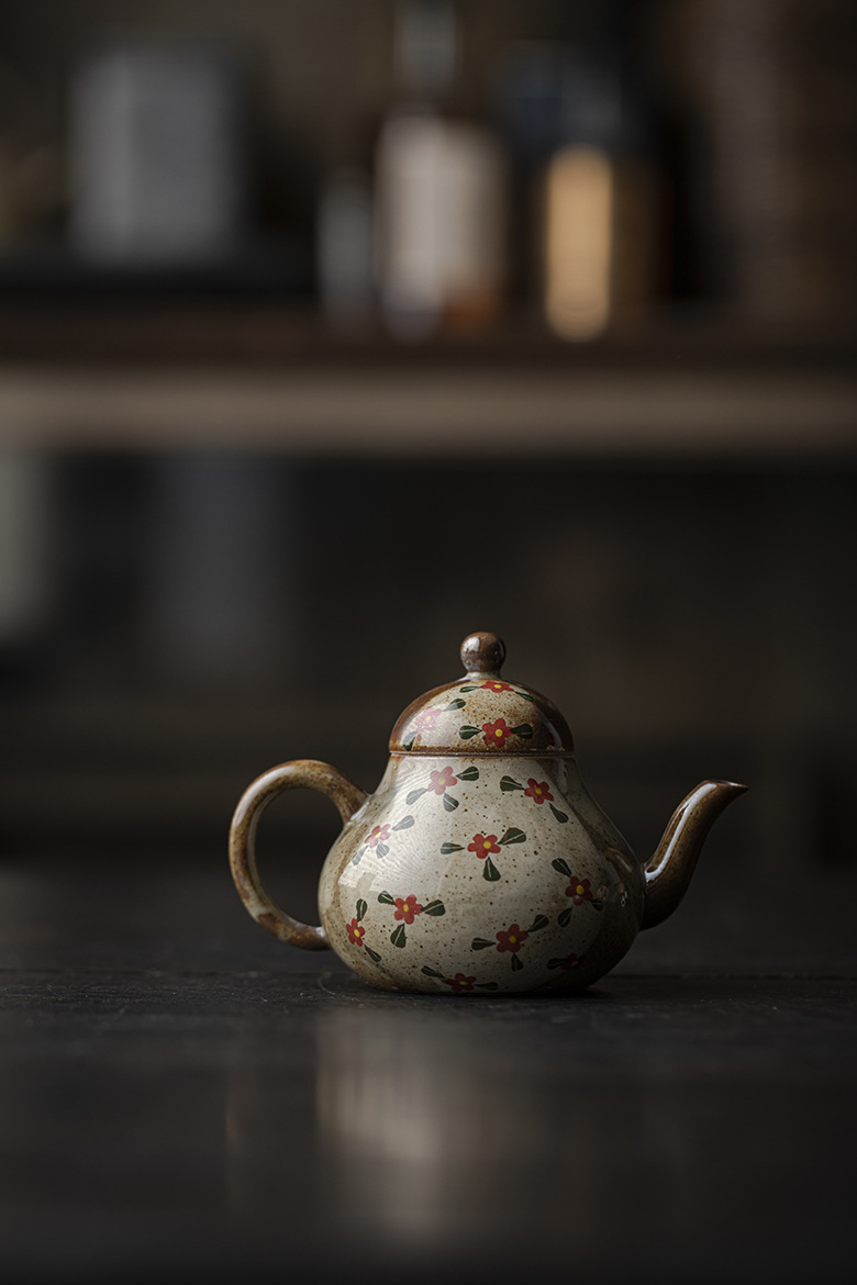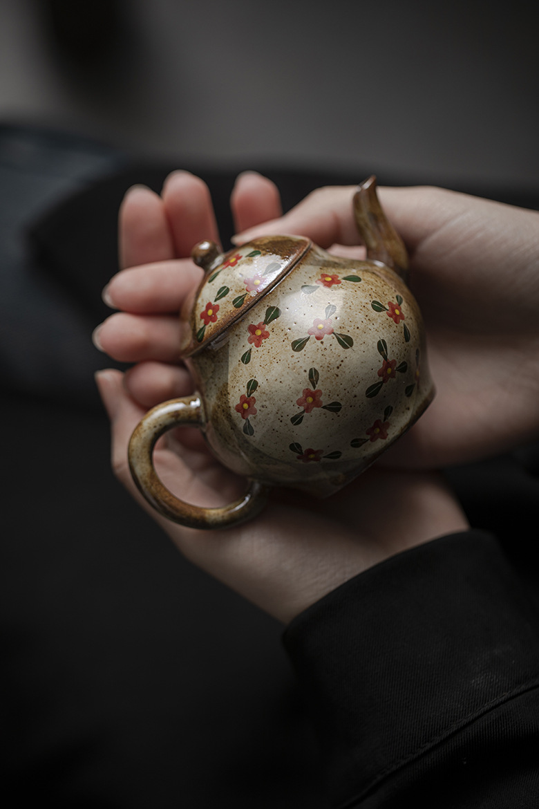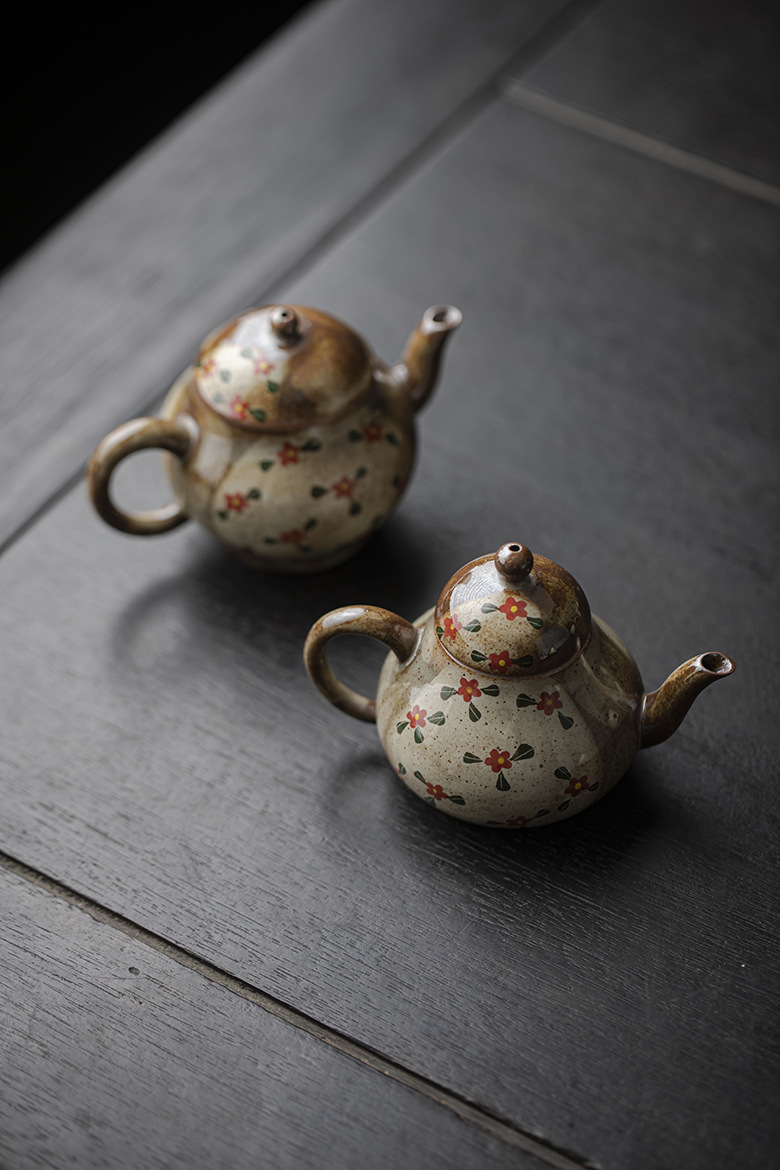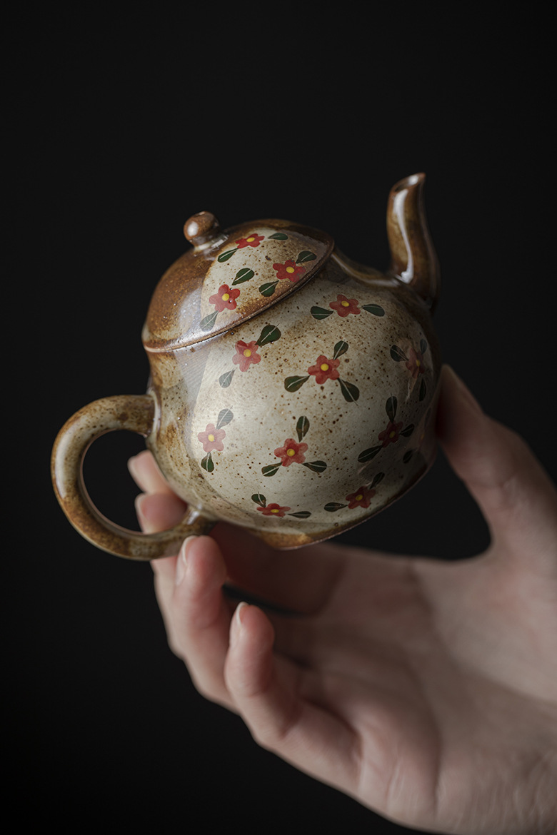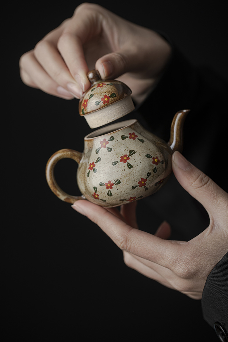 Hand-Painted Red Flowers: The small red flowers are painted by hand, each petal and leaf carefully detailed to capture the essence of nature's beauty. These flowers add a pop of color and a touch of elegance to the teapot.